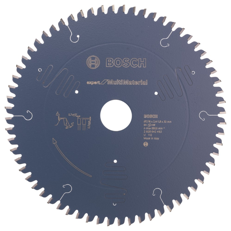 BOSCH CIRKELZAAGBLAD HM 216X2,4X30-64TF MULTI MAT. ALUMINIUM/SANDWICH/PVC/NE-MATERIALEN